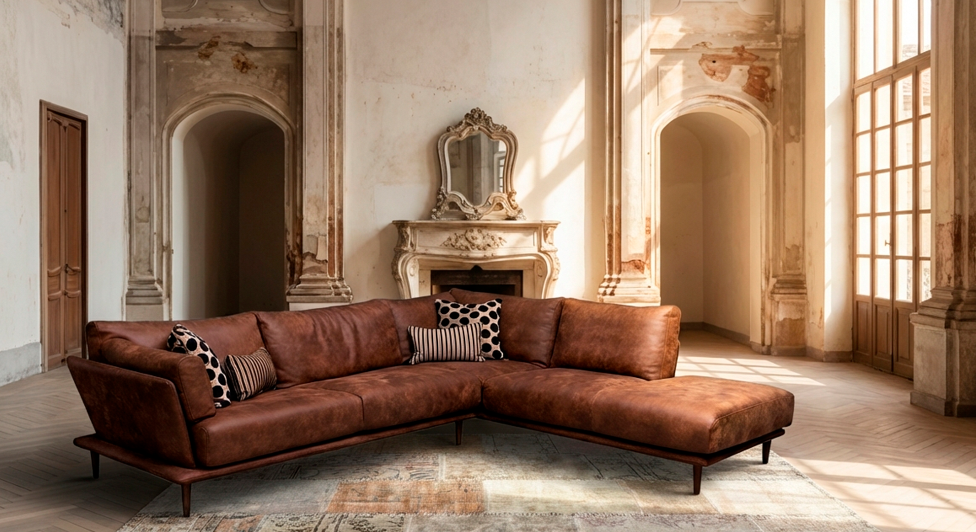 - 4 pers 302 cm. Tribe fuld anilinlæder kr. 36.980