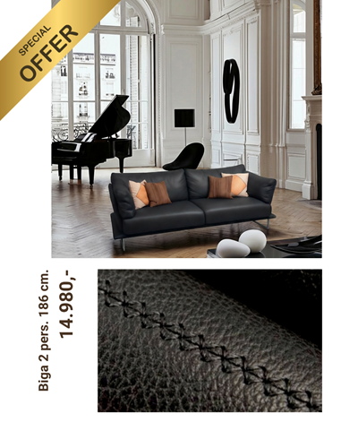 - 2 pers 185 cm. Tribe fuld anilinlæder kr. 23.980
